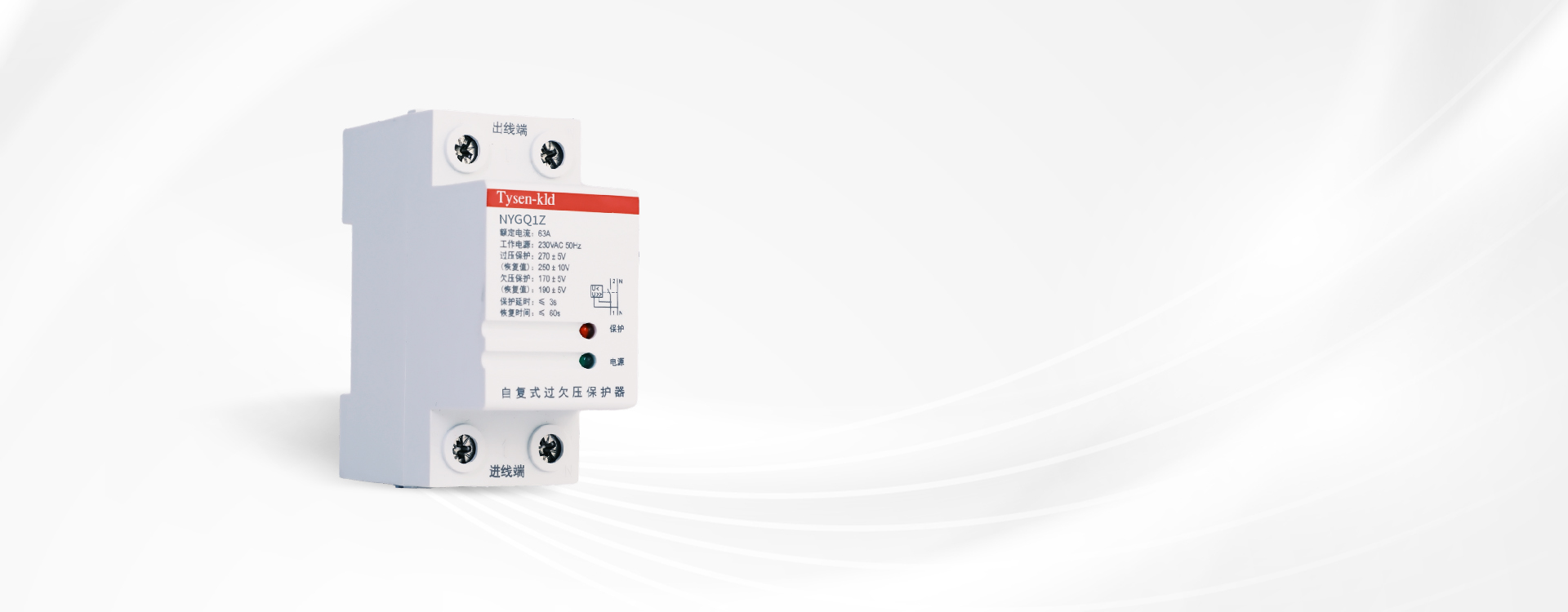 NYGQ1Z series self-recovery over-voltage and under-voltage protector is installed in the circuit to detect changes in voltage parameters of the electrical equipments. When the voltage rises above the set value, it can automatically cut off the power supply; when the voltage is recovered to the level below the set value, it can automatically turn on the power supply. It’s commonly used in residential compounds, office buildings, shopping malls, factories and other areas of the electrical system to protect circuits and electrical equipment from the hazards of over-voltage and under-voltage.